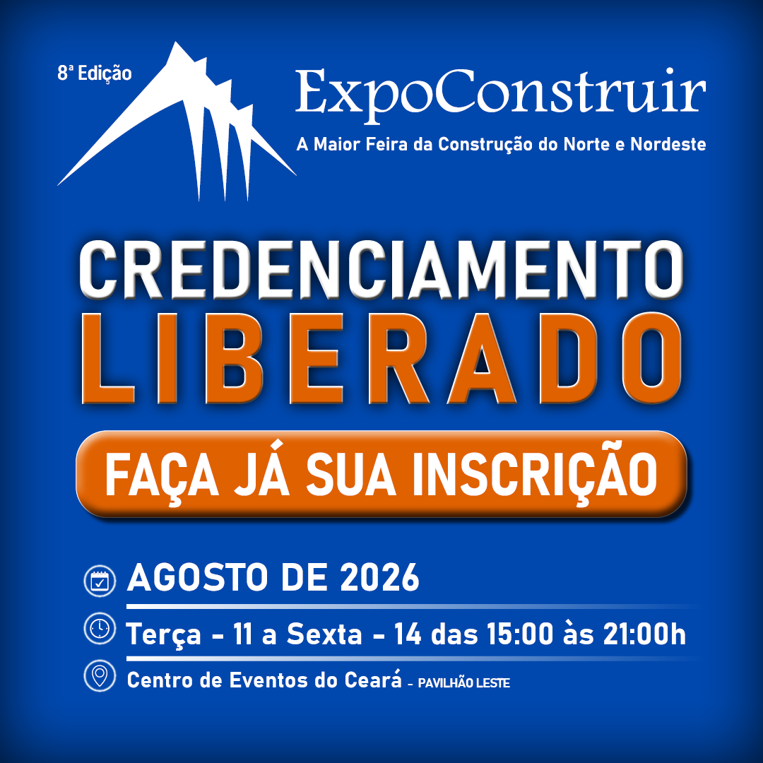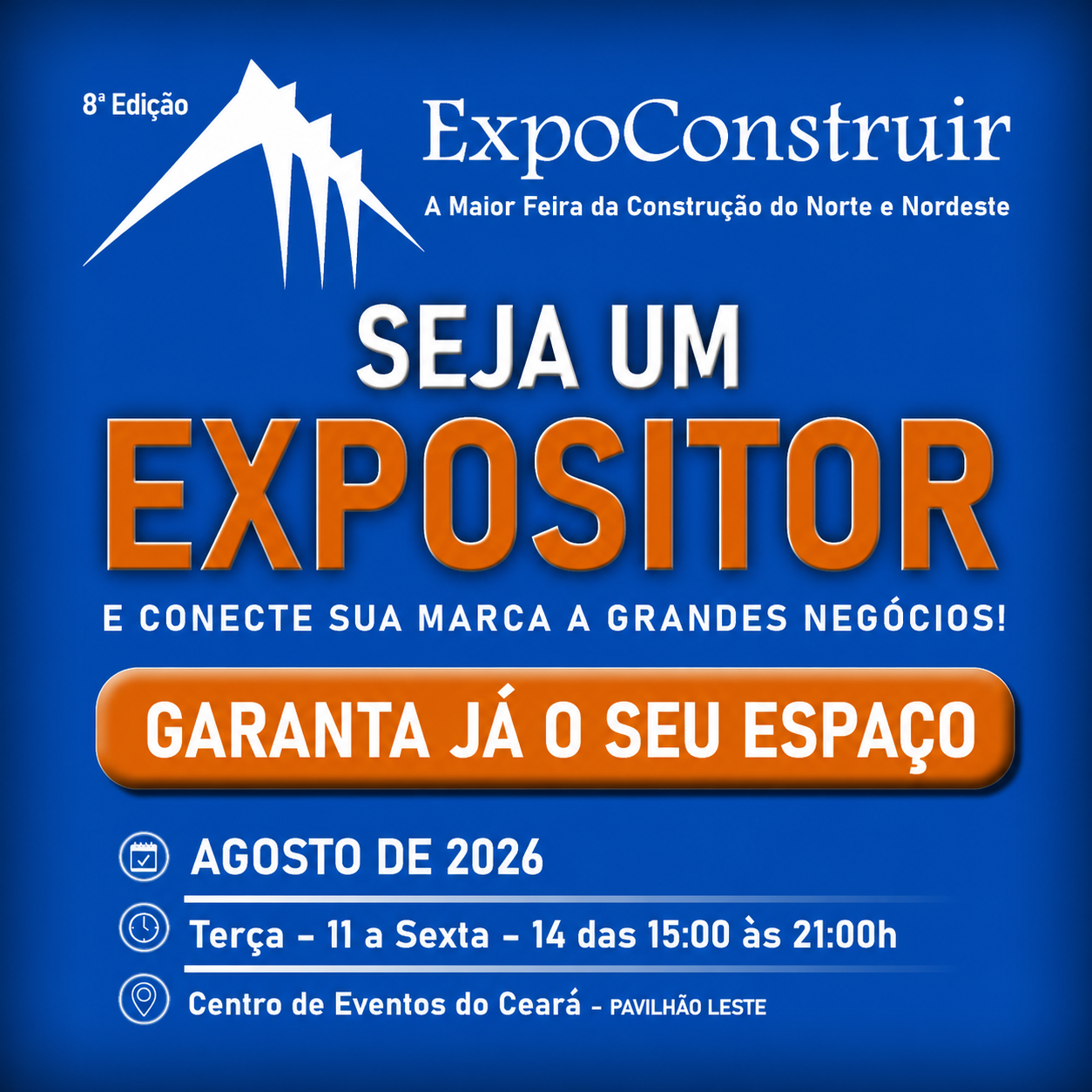 A ExpoConstruir 2026 acontecerá de 11 a 14 de agosto de 2026, no Centro de Eventos do Ceará.